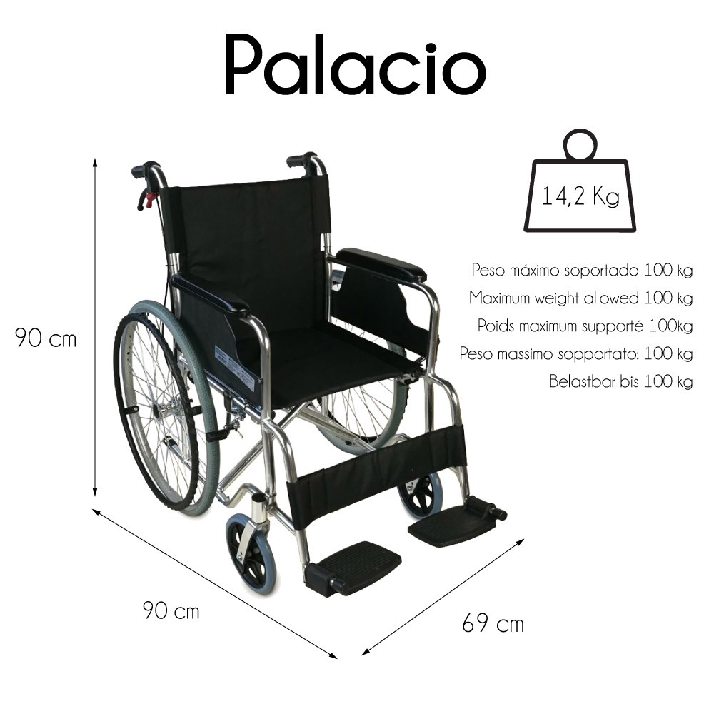 La silla de ruedas modelo Palacio es equivalente a ligereza y diseño. Se trata de una silla de ruedas económicas en la que puedes confiar tanto tu comodidad como tu seguridad, y asegurar el desahogo del acompañante.